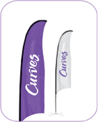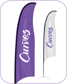 Draw attention to your canopy with a ProFlag™ Blade with Curves® logo imprinted on both sides. Choose from Deluxe Folding Base; ideal for display on hard surfaces, or the Deluxe Ground Stake with spinning mount for maximum visibility on soft surfaces. Available in White and Grape fabric color. * 11 Business Day Turnaround Time