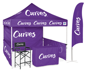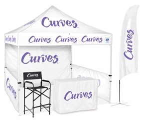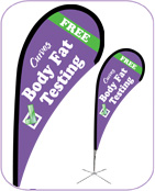 Draw attention to your canopy with a ProFlag™ Teardrop with Curves® logo and Body Fat Testing, full bleed digitally printed with mirror image. Choose from Deluxe Folding Base; ideal for display on hard surfaces, or the Deluxe Ground Stake with spinning mount for maximum visibility on soft surfaces. * 11 Business Day Turnaround Time