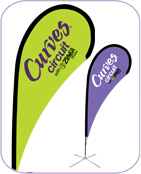 Draw attention to your canopy with a ProFlag™ Teardrop with Curves® Zumba logo, full bleed digitally printed with mirror image. Choose from Deluxe Folding Base; ideal for display on hard surfaces, or the Deluxe Ground Stake with spinning mount for maximum visibility on soft surfaces. * 11 Business Day Turnaround Time